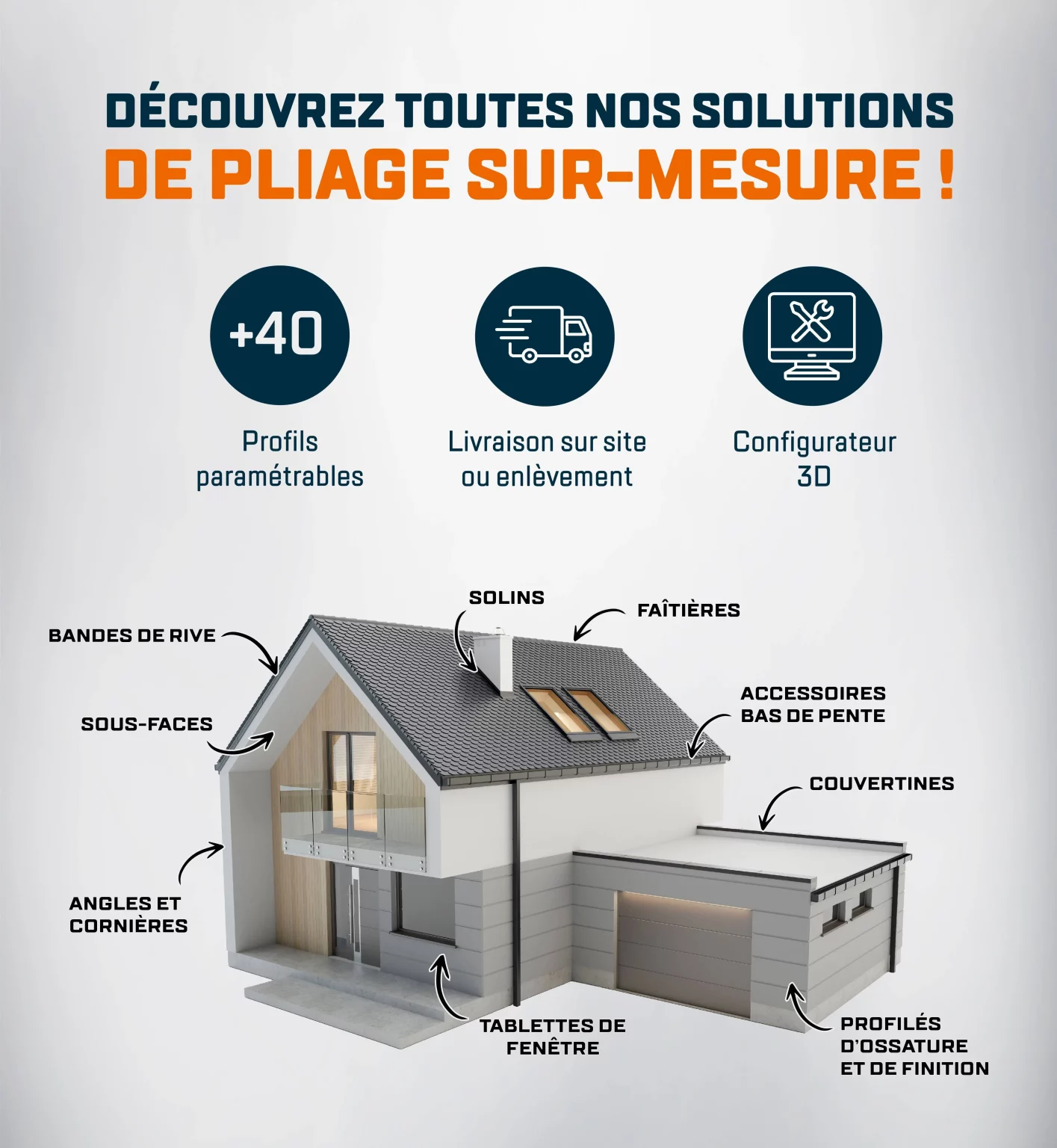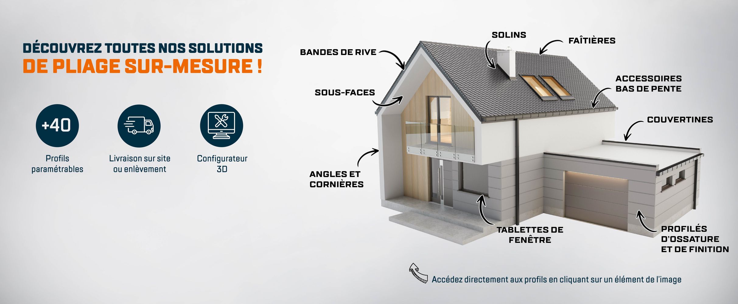 De la couverture à la façade en passant par la menuiserie, nous disposons d'un large choix de profils à configurer parmi nos 3 familles de produits.